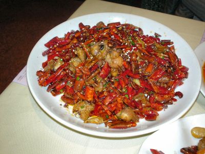 | 羊肉に新疆のスパイスをからめて油で揚げた物。結構辛い。ビールによく合いますが匂いがダメという人も居るかも? | 唐辛子と鶏肉のぶつ切りを炒めた物。ビールによく合います。 | |||||||||||||