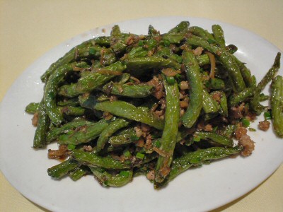 | カボチャの弦の芽のニンニク炒め。広西省南寧で食べました。食感や味は空芯菜に似てますが、これまで食べた野菜炒めの中で一番美味しいかもしれない・・・ | ガンベンスージードウです。インゲンのような豆を油で揚げて漬物や挽肉と炒めた物。四川料理ですが辛くはありません。豆の美味さを引き出した絶妙な味です。 | |||||||||||||